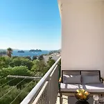 ベッドルーム1室のHvar Lech Spacious 2 Bedroom Apartment With Private Parking フヴァルはテラスがあり、Krizna lukaから歩いて5分以内の場所に位置しています。
